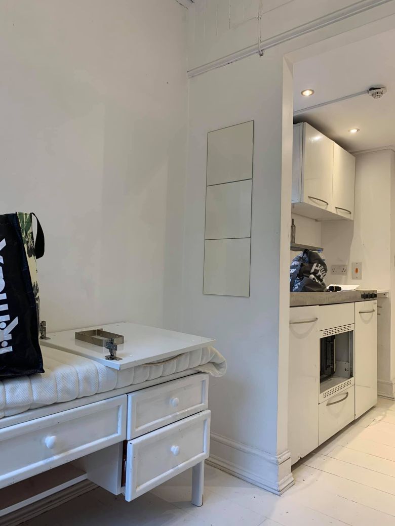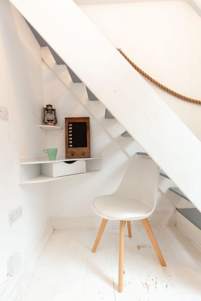 This holiday let studio is a good example of how to make use of every possible nook and cranny in a small space and to give holiday makers a comfortable experience with enough room to hang their clothes and relax and not feel cramped.
