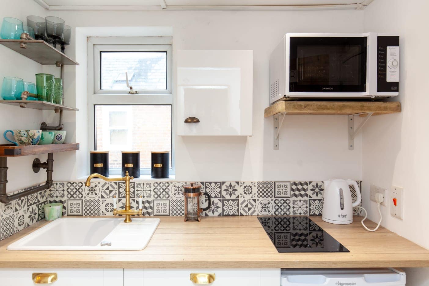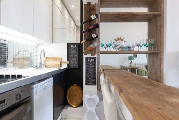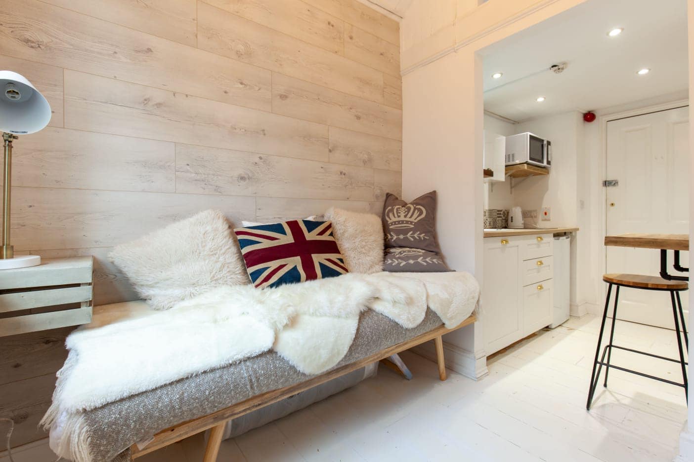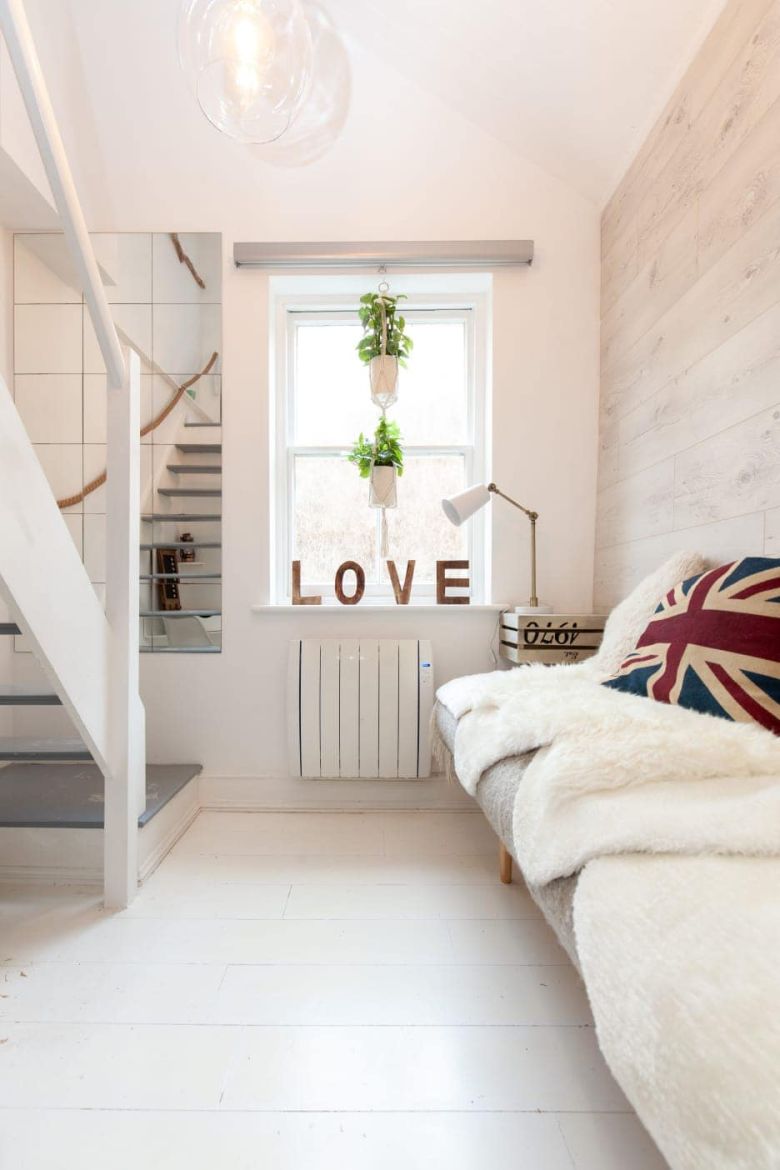 This holiday let studio is a good example of how to make use of every possible nook and cranny in a small space and to give holiday makers a comfortable experience with enough room to hang their clothes and relax and not feel cramped.